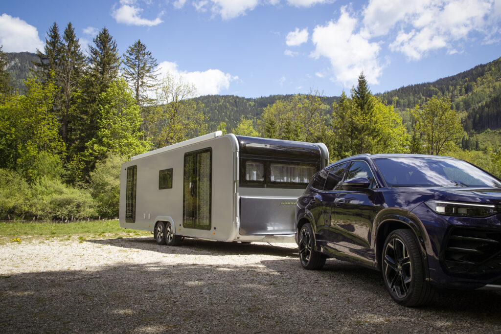 Zieh deinen Astella ganz einfach mit dem passenden Zugfahrzeug – wie einen klassischen Wohnwagen.