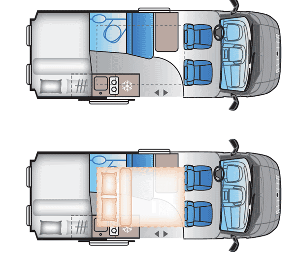 Markise, Fahrradträger, Anhängerkupplung, Navigationssystem, Rückfahrkamera, Radio, Verdunkelungsrollo, Fliegengitter, Heizung/Boiler, Bordküche, Kühlschrank, Toilette, Dusche, Notfallapotheke