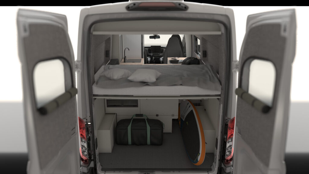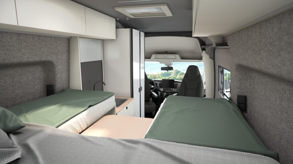 Der Innenraum ist wie gemacht für zwei – und passt sich ganz selbstverständlich eurem Alltag an: tagsüber beim gemütlichen Zusammensein, nachts beim entspannten Schlafen. Diese besondere Kombination aus Freiheit und Komfort, verpackt in ein schlichtes, vertrautes Design, ist vor allem für junge Abenteurer und Vanlife-Einsteiger super attraktiv, die Lust auf echtes, authentisches Unterwegssein haben.